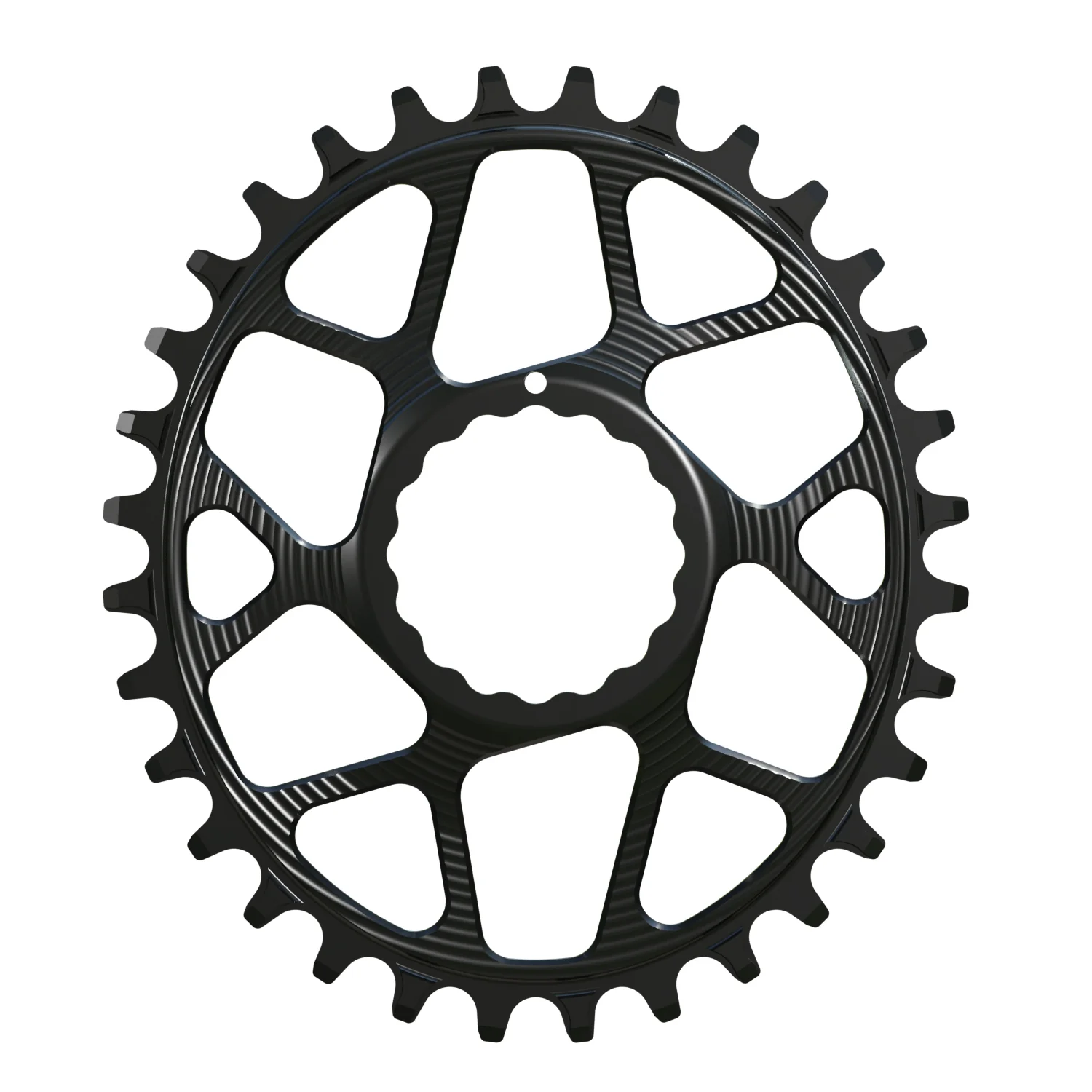 Works Components RaceFace Cinch direct mount oval chainring - engineered to work with T-Type and Non T-Type 10-12spd chains. Precision CNC-machined in the UK from aerospace 7075-T6 aluminium. Its narrow-wide tooth profile ensures excellent chain retention and the oval profile maximises the effective power stroke and helps reduce dead spots.